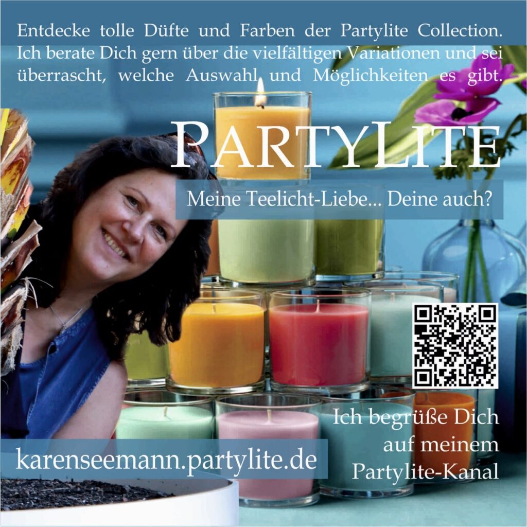 Tritt ein in meinen whatsapp-Kanal und entdecke die neuesten Angebote:  https://whatsapp.com/channel/0029VaOR7RIGpLHGAO8tHy3T oder schaue direkt mal in meinen Onlineshop: karenseemann.partylite.de